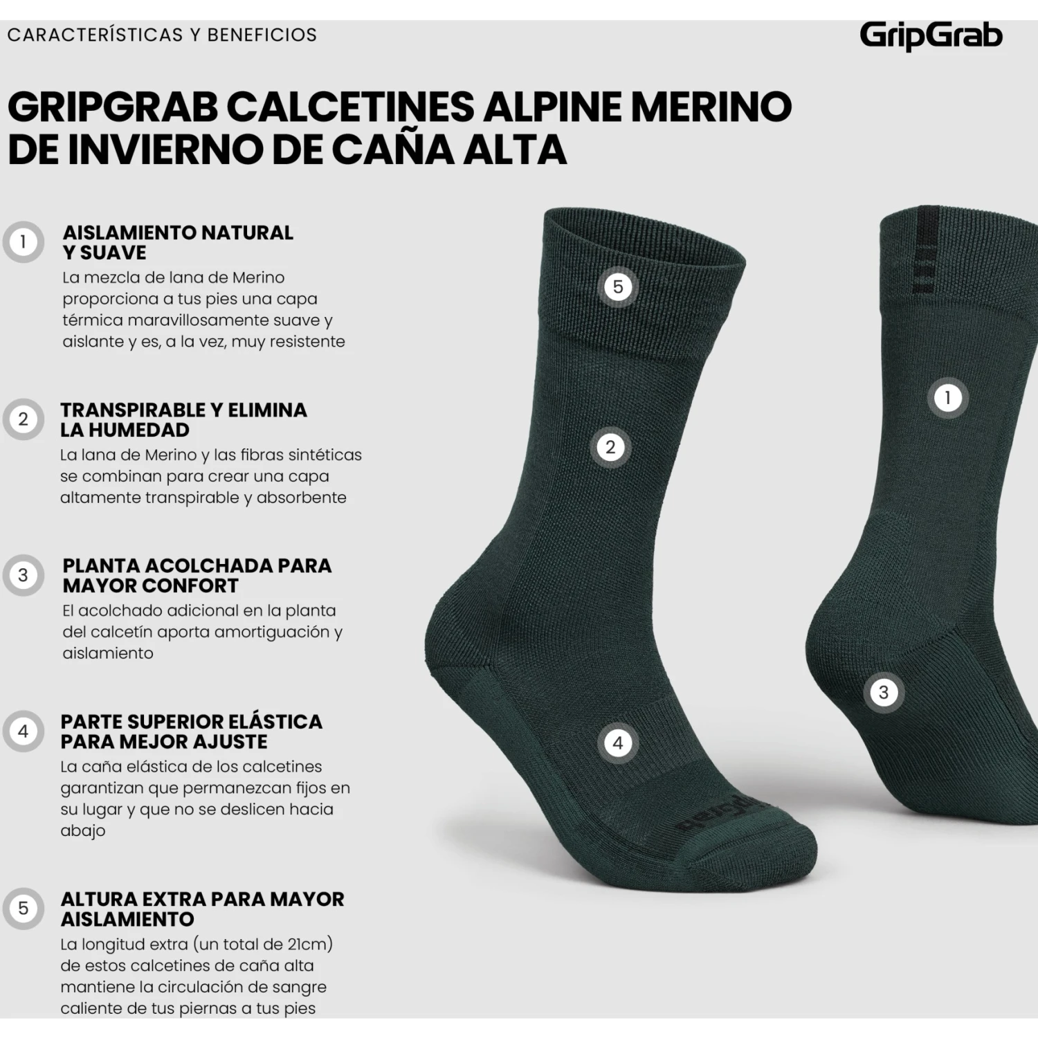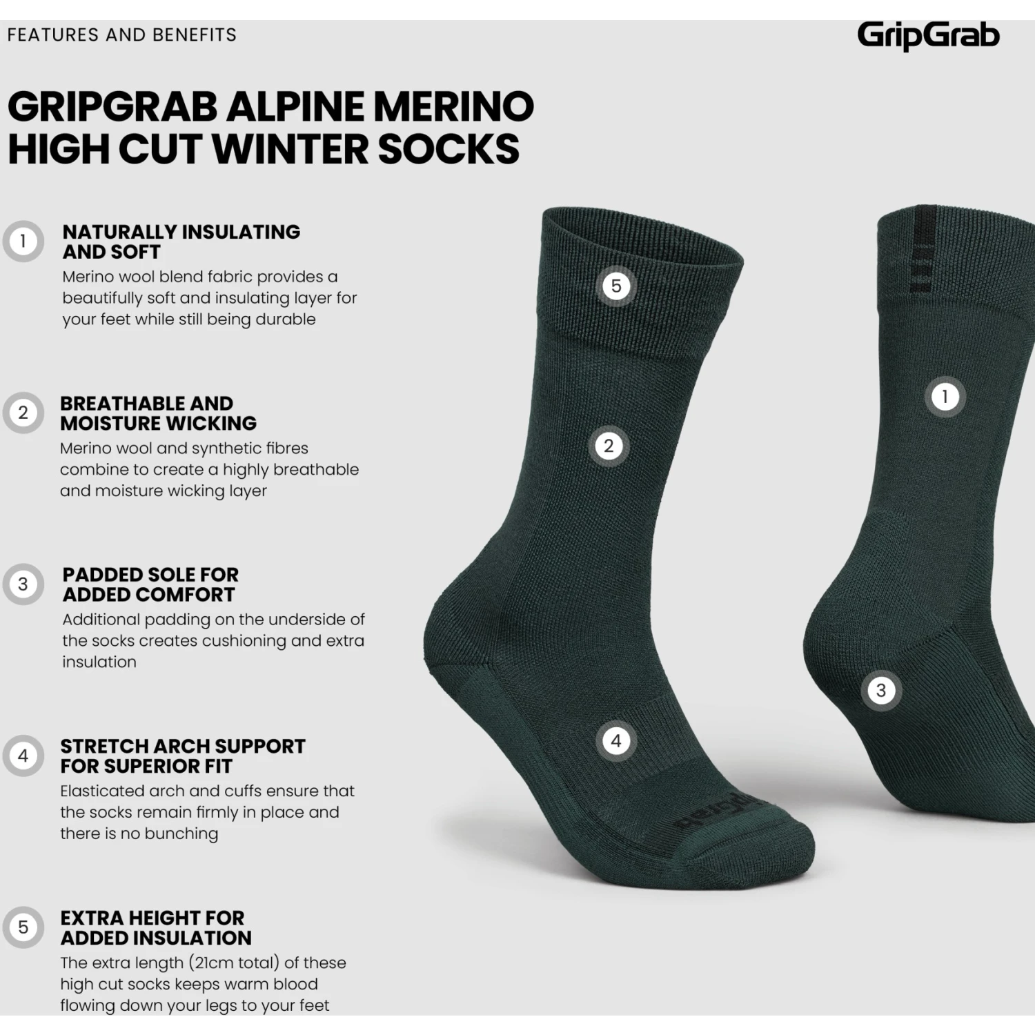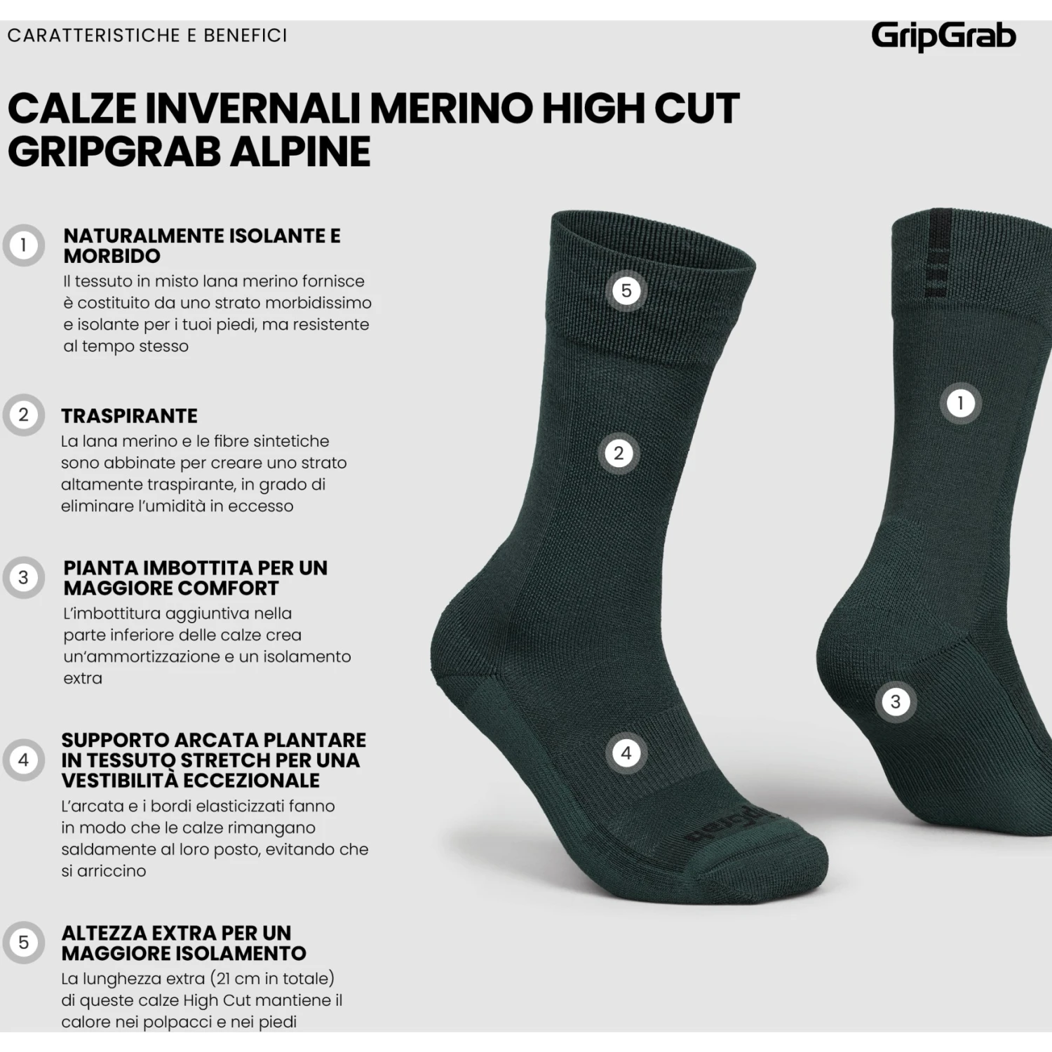 GripGrab Alpine Merino High Cut Winter Fahrradsocken – Grün