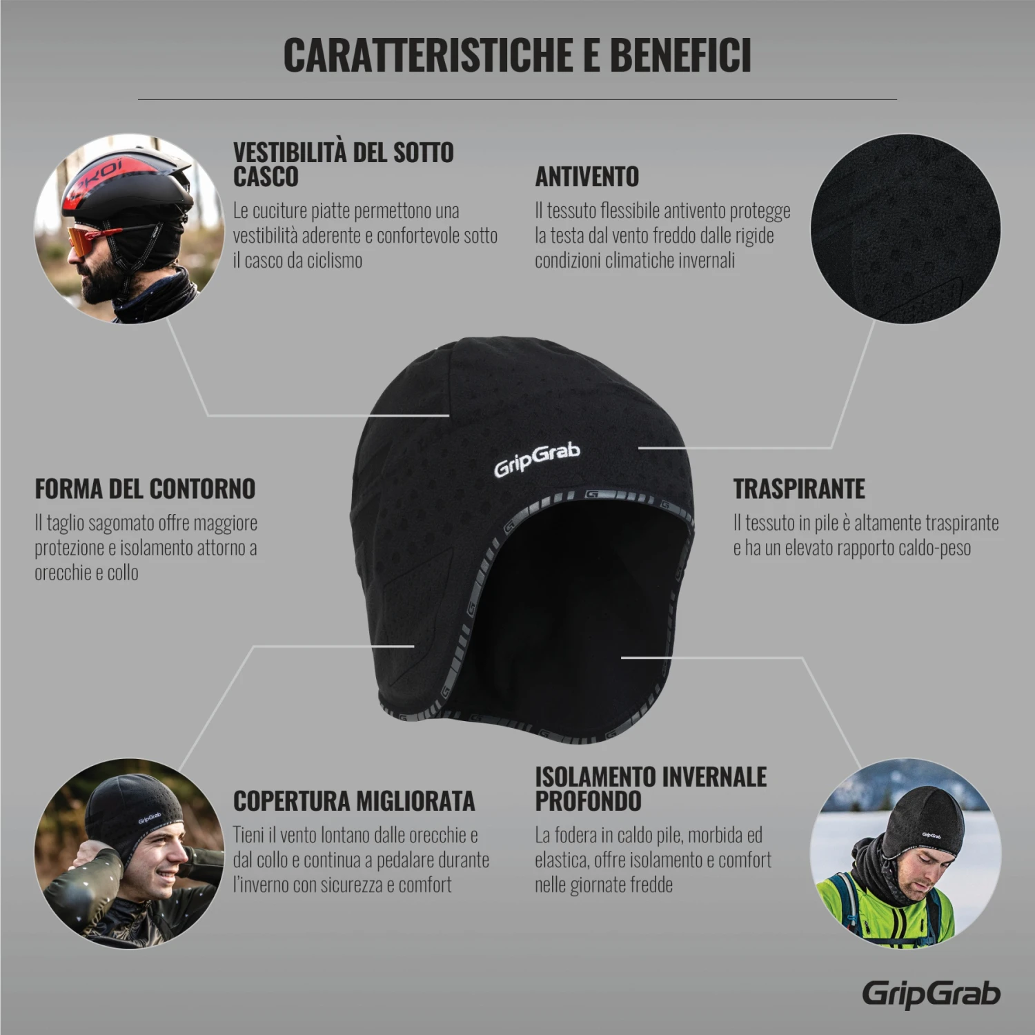 Merkmale der GripGrab Aviator Winddichte Thermal Unterhelm Mütze