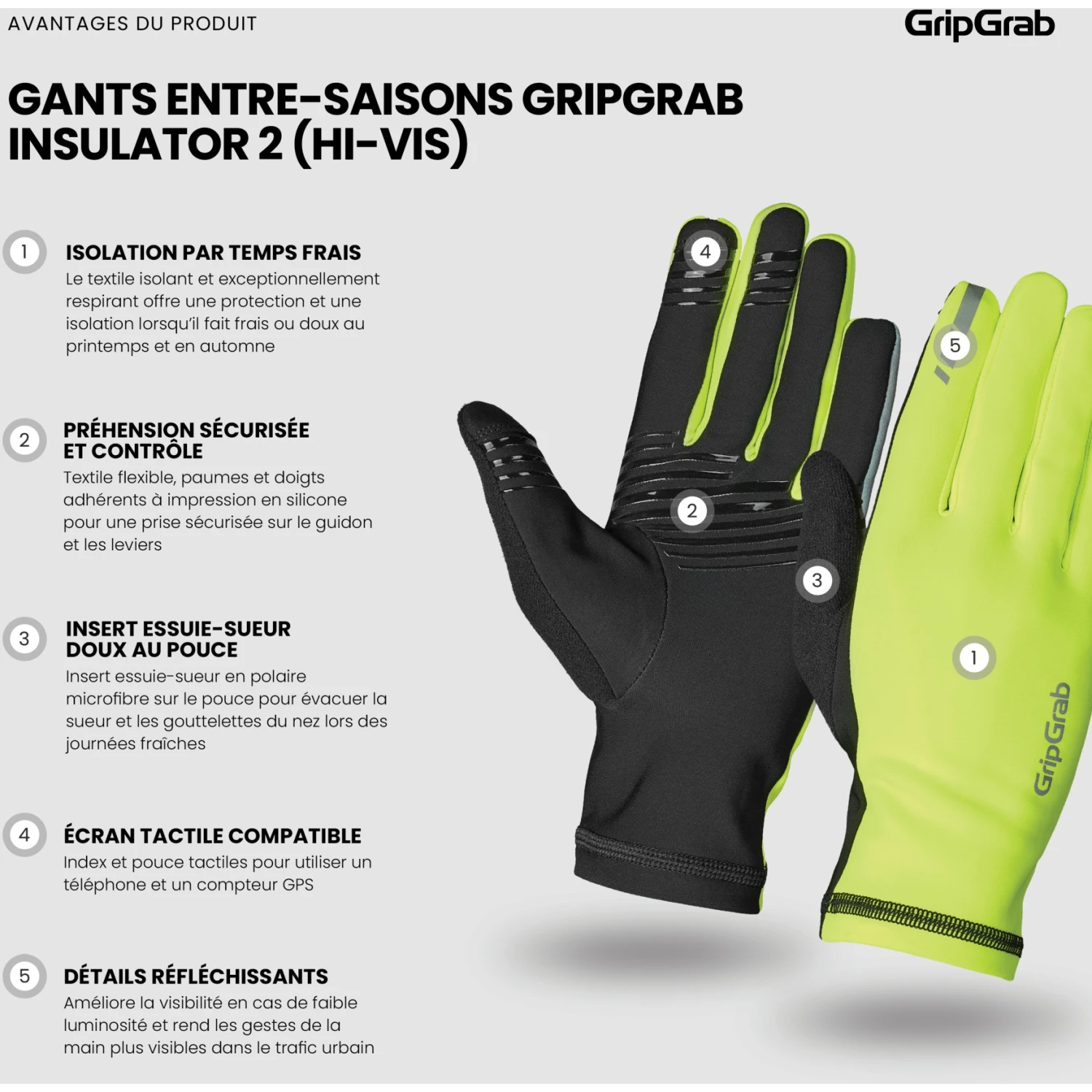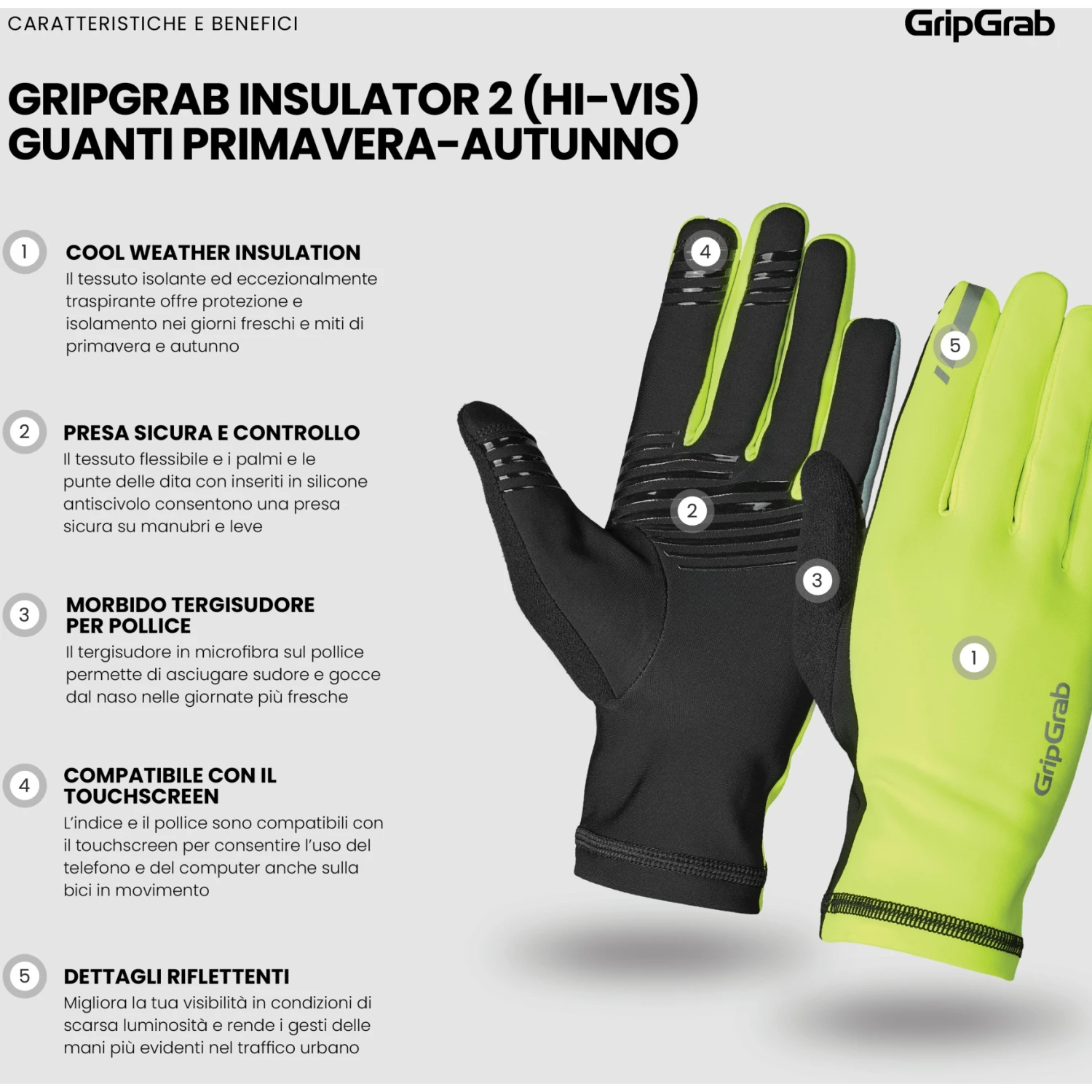 Die Frühjahrs-/Herbsthandschuhe GripGrab Insulator 2 bieten eine leichte Wärmeisolierung für kühle Frühlings- und Herbsttage. Diese leichten Thermo-Radhandschuhe aus isolierendem, hoch atmungsaktivem und elastischem Material stellen den perfekten Kälteschutz und eine hervorragende Isolierung für die Übergangszeit zur Verfügung.
