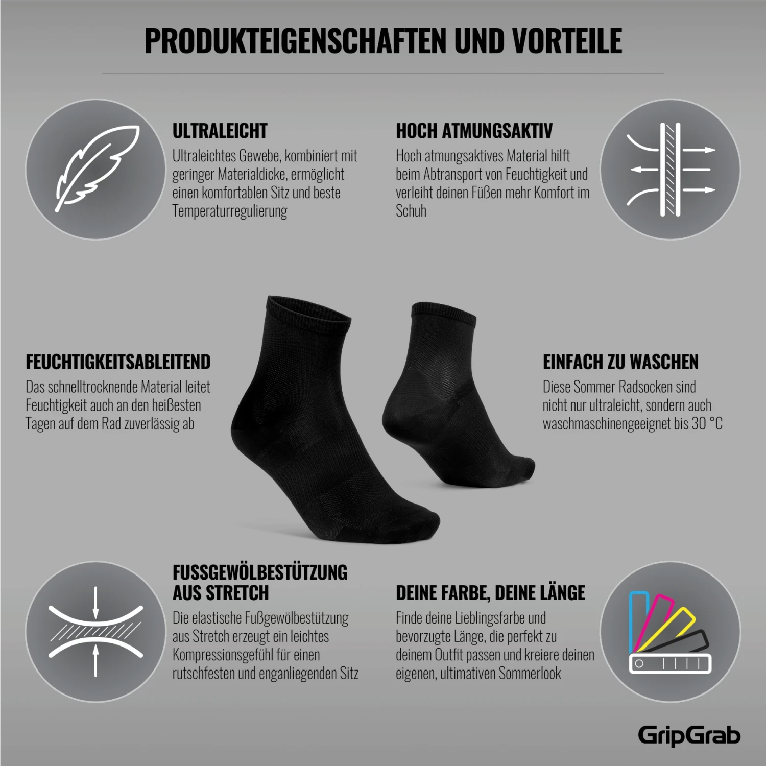 GripGrab Lightweight Airflow Short Socken – Schwarz