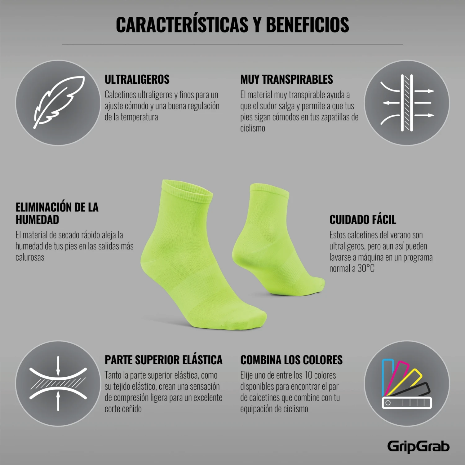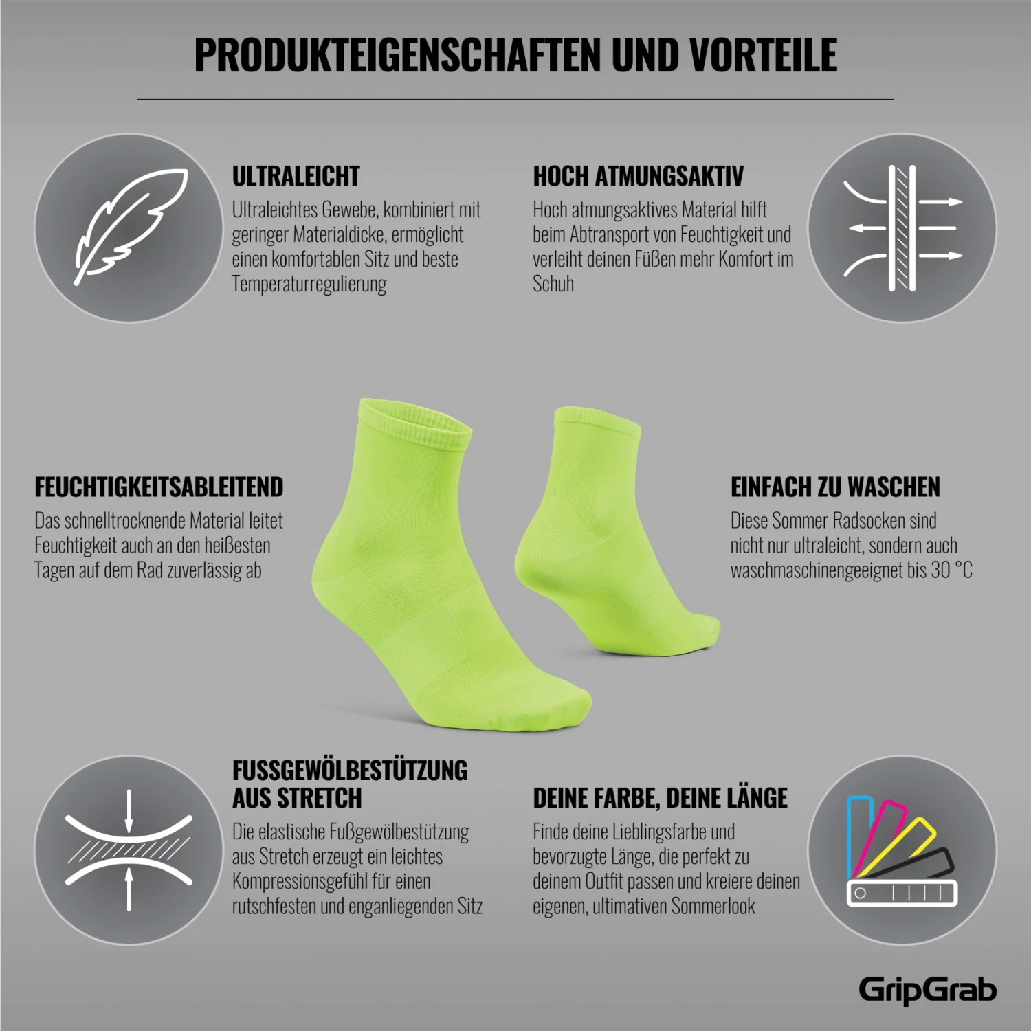 GripGrab Lightweight Airflow Short Socken – Yellow Hi-Vis