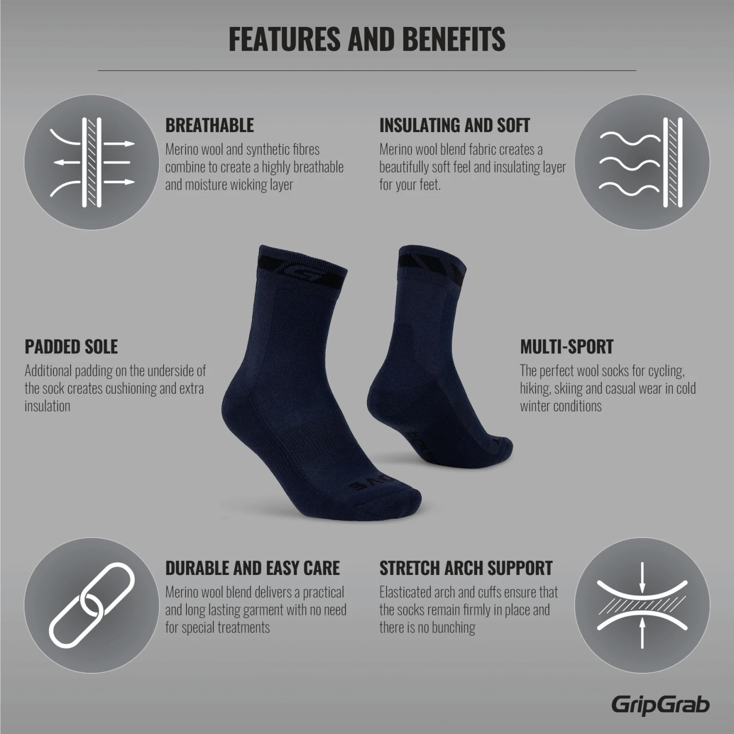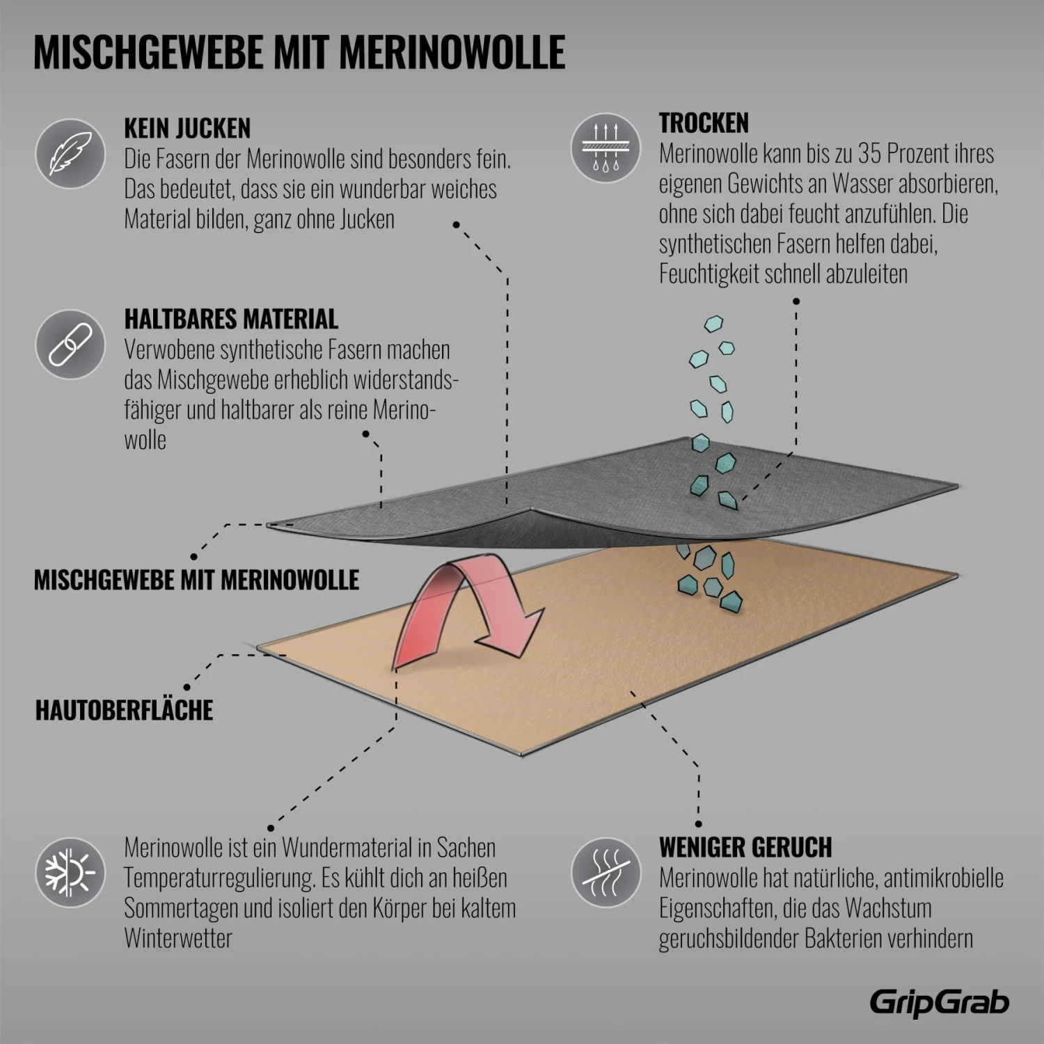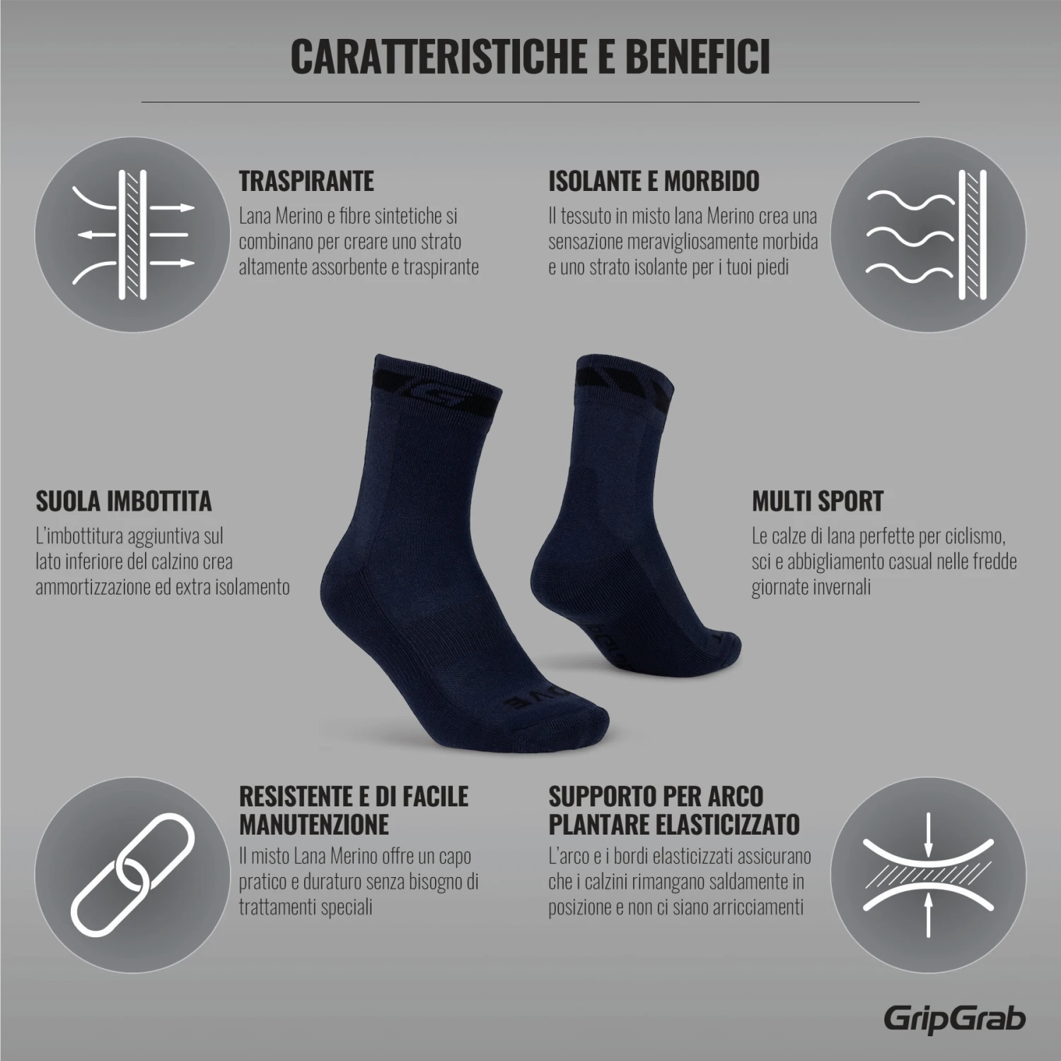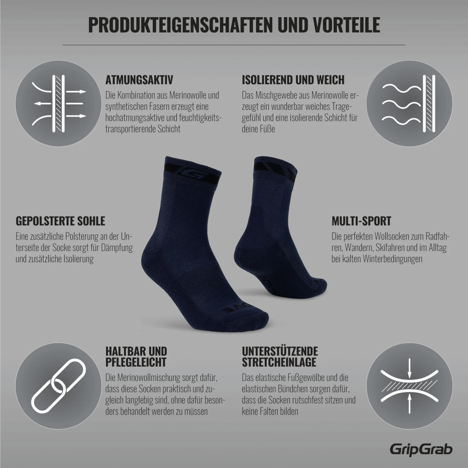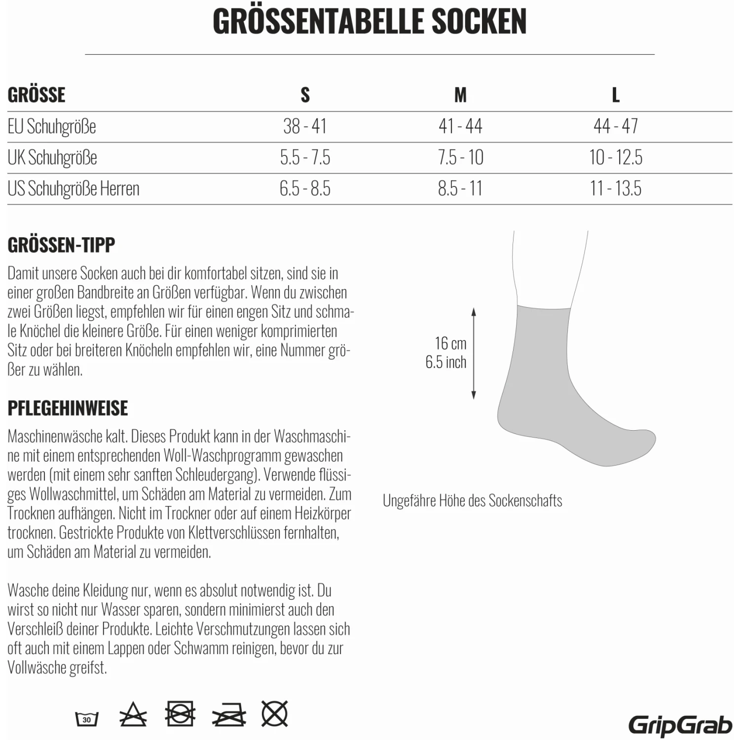 Die GripGrab Merino Wintersocken sind Höchstleistungs-Radsocken für die kalten Monate und halten deine Füße dank der Merinowollmischung selbst bei den winterlichsten Bedingungen warm und trocken. Der elastische Support für das Fußgewölbe schafft einehervorragende Passform, während die gepolsterte Sohle zusätzlichen Komfort und Wärmeisolierung für die langen Kilometer im Winter bietet. In einer Auswahl an herausragenden Farben erhältlich.
