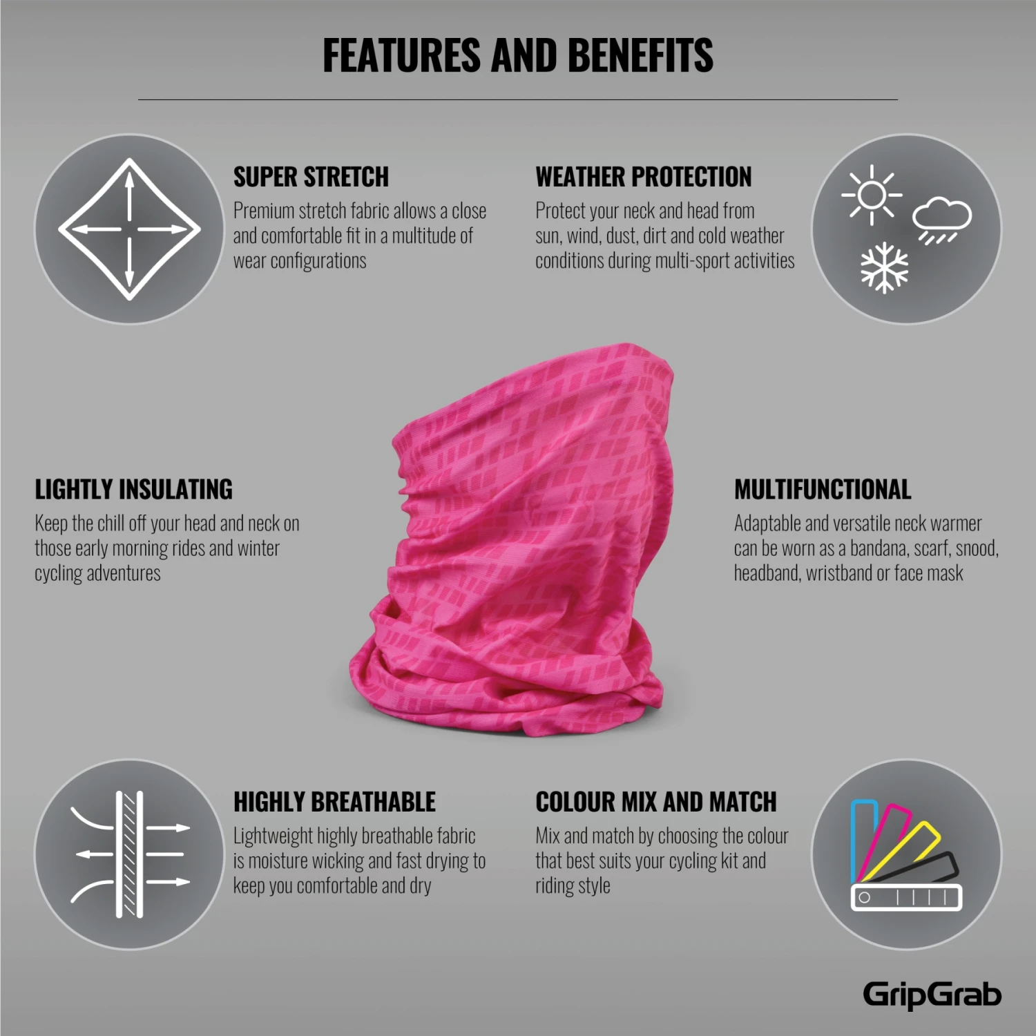 GripGrab Multifunktions Halstuch – Pink