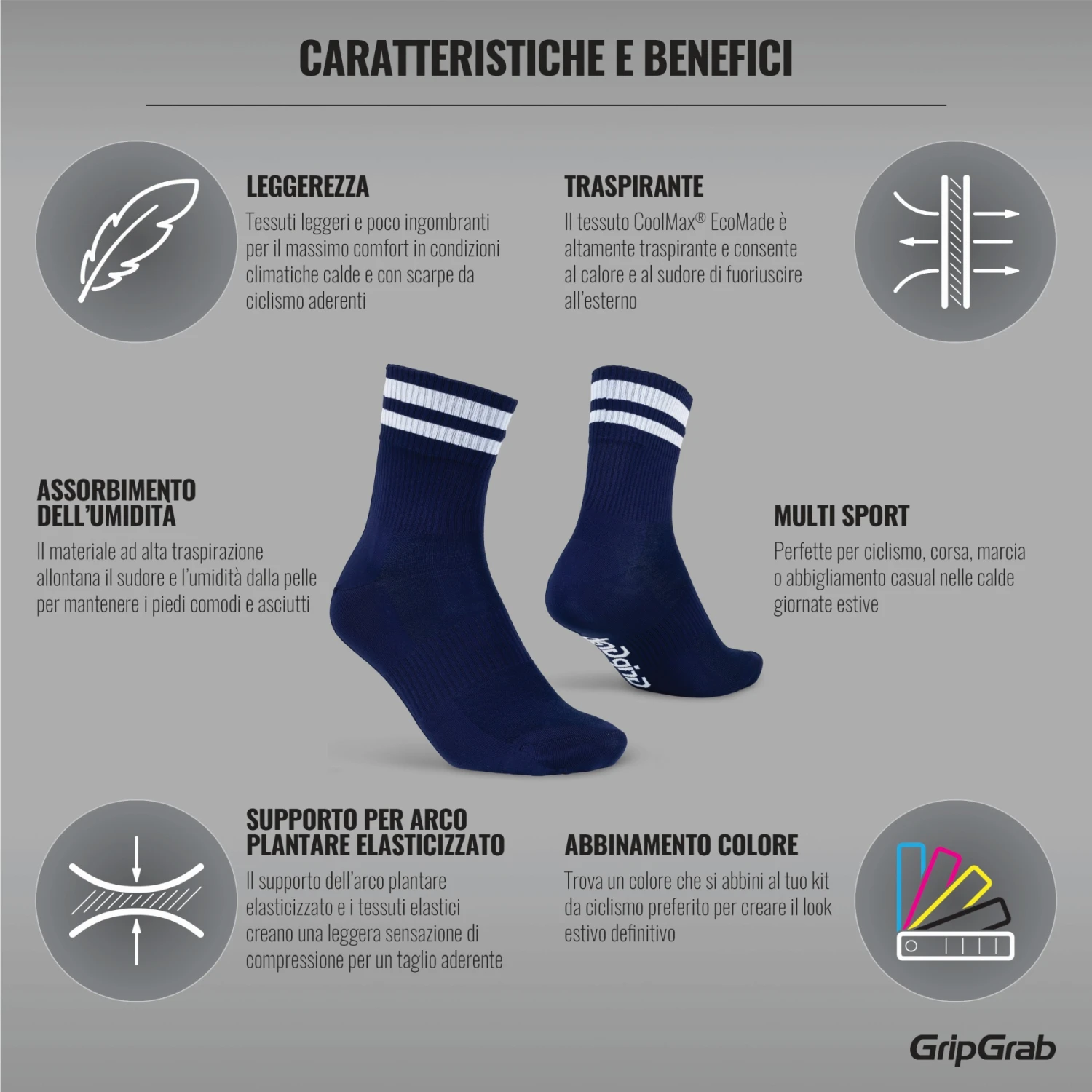 Die kultige Röhrensocke der 70ziger wird mit Performance-Materialien in den neuen GripGrab Original Crew Socken wiedergeboren. GripGrab hat den zeitlosen Klassiker mit schnell trocknenden Funktionsmaterialien und einer optimierten Passform ausgestattet. Erkennst du das Retro-Streifendesign und die gerippte Struktur aus dem Jahrzehnt des Grooves wieder? Dieses Design macht die Socken zur perfekten Ergänzung deiner Outfits.