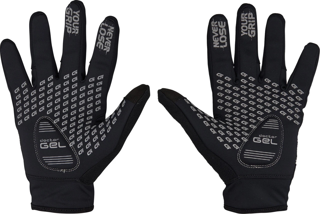 Features:4 mm DoctorGel® Polsterungreflektierende Grafikenverstärkter Grip dank Silikonprints auf der HandflächeTouchscreen-Kompatibilitätwinddichtatmungsaktivmittlerer RegenschutzFrottee-Einsatz am DaumenTechnologien:DoctorGel®: