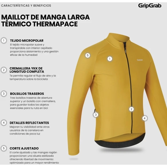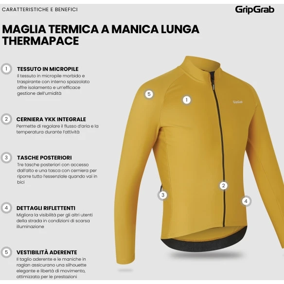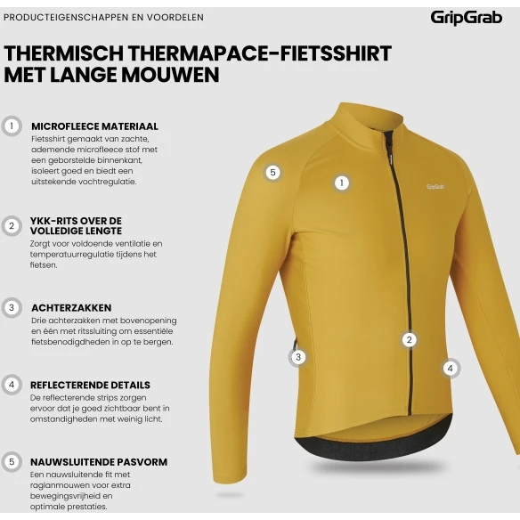 GripGrab ThermaPace Thermo Langarmtrikot – Mustard Yellow