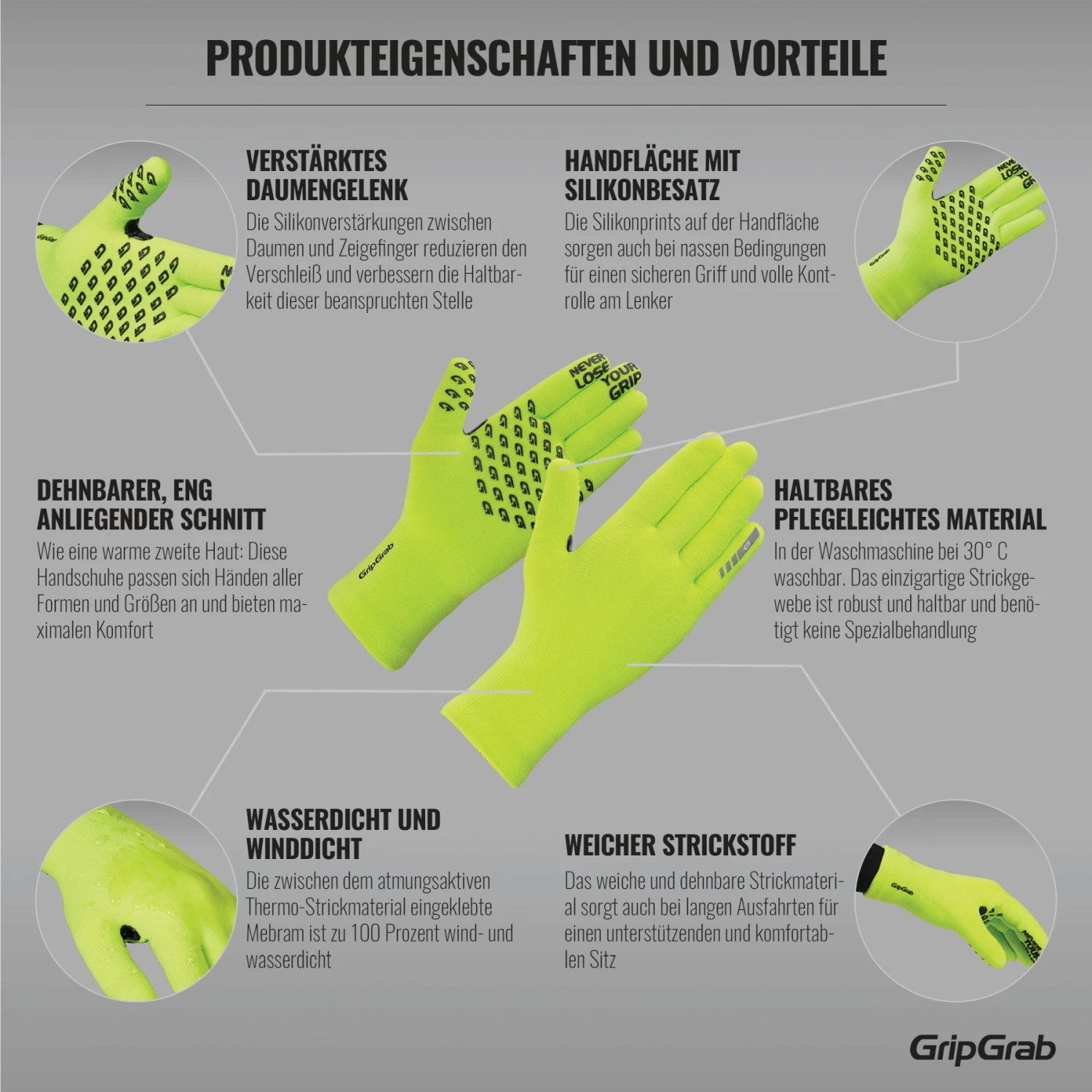 GripGrab Wasserdichter Thermal Strickhandschuh – Yellow Hi-Vis